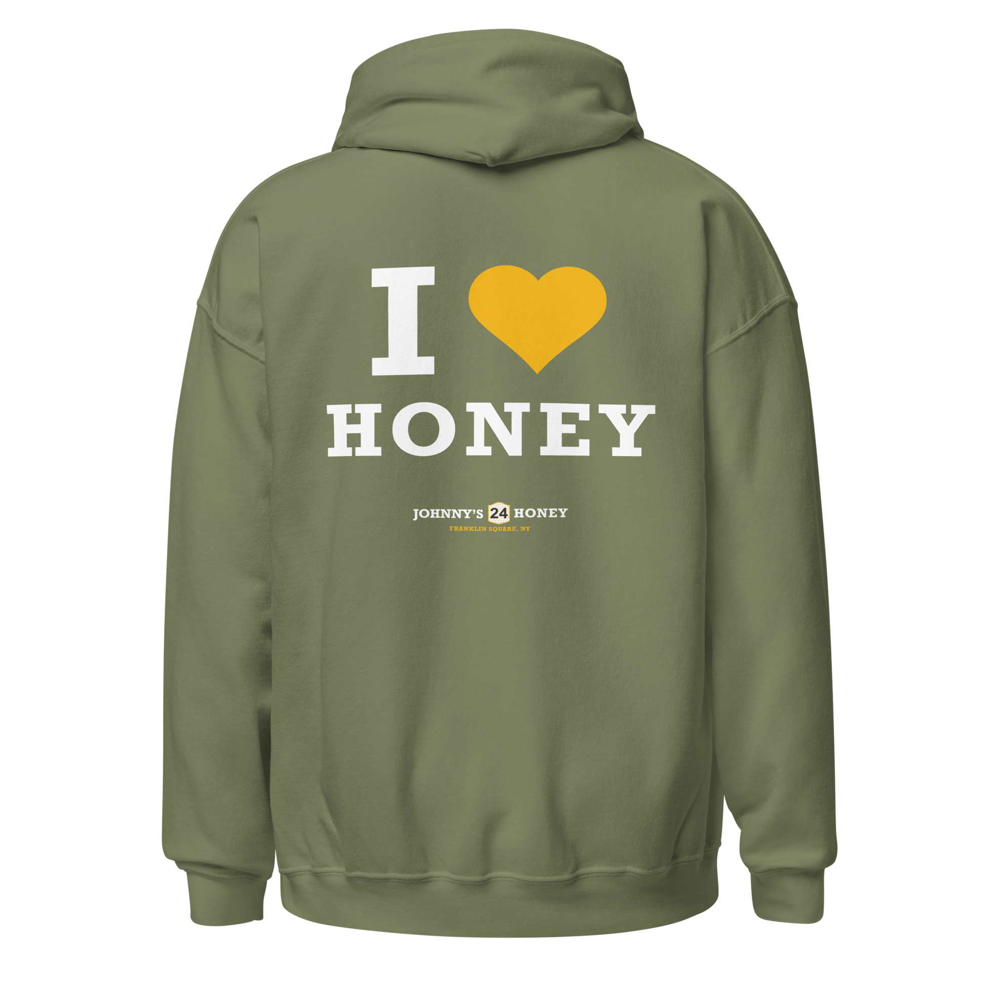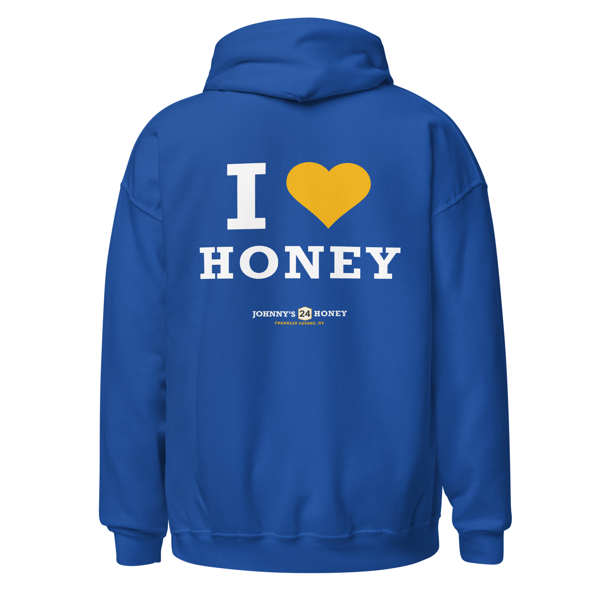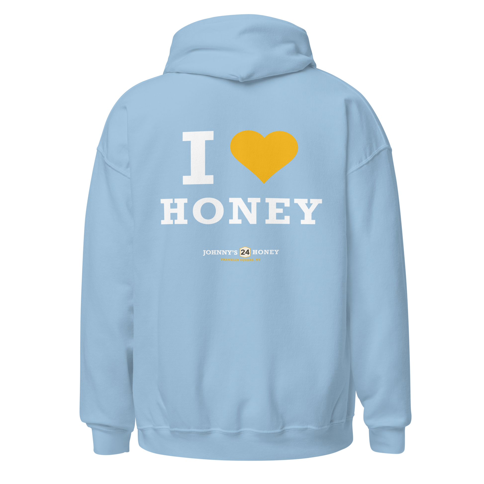 Unisex Hoodie- Bee in Front, I Love Honey in Back